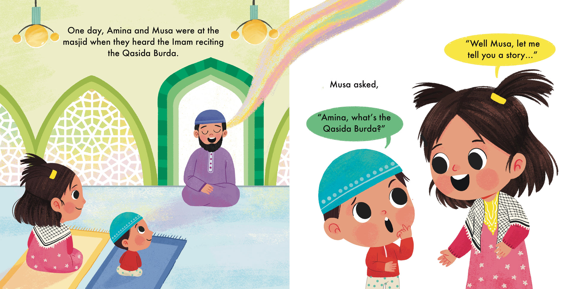 On the famous “Mawlaya Salli” Nasheed. My First Burda shares the story of two young children and their journey through time as they discover the history of the Qasida Burda poem and the inspiring life of Imam Al Busiri.